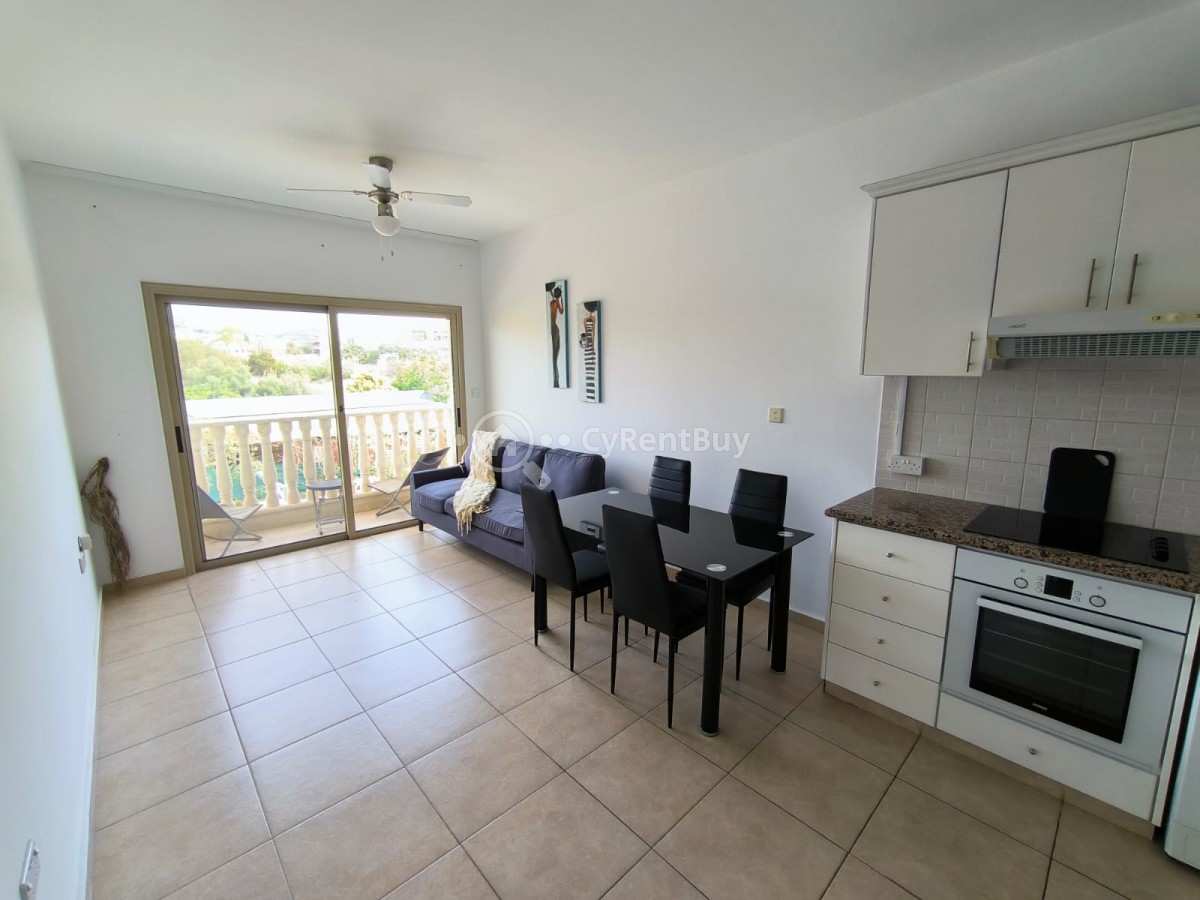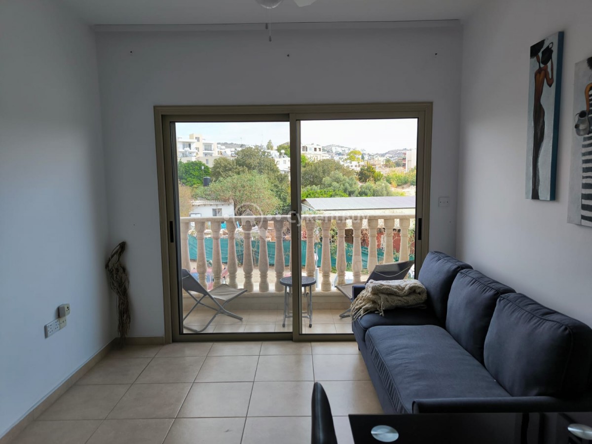 Do wynajęcia zadbane mieszkanie 1,5-pokojowe, położone na terenie kompleksu mieszkalnego z basenem wspólnym, w popularnej dzielnicy Geroskipou w rejonie Pafos.