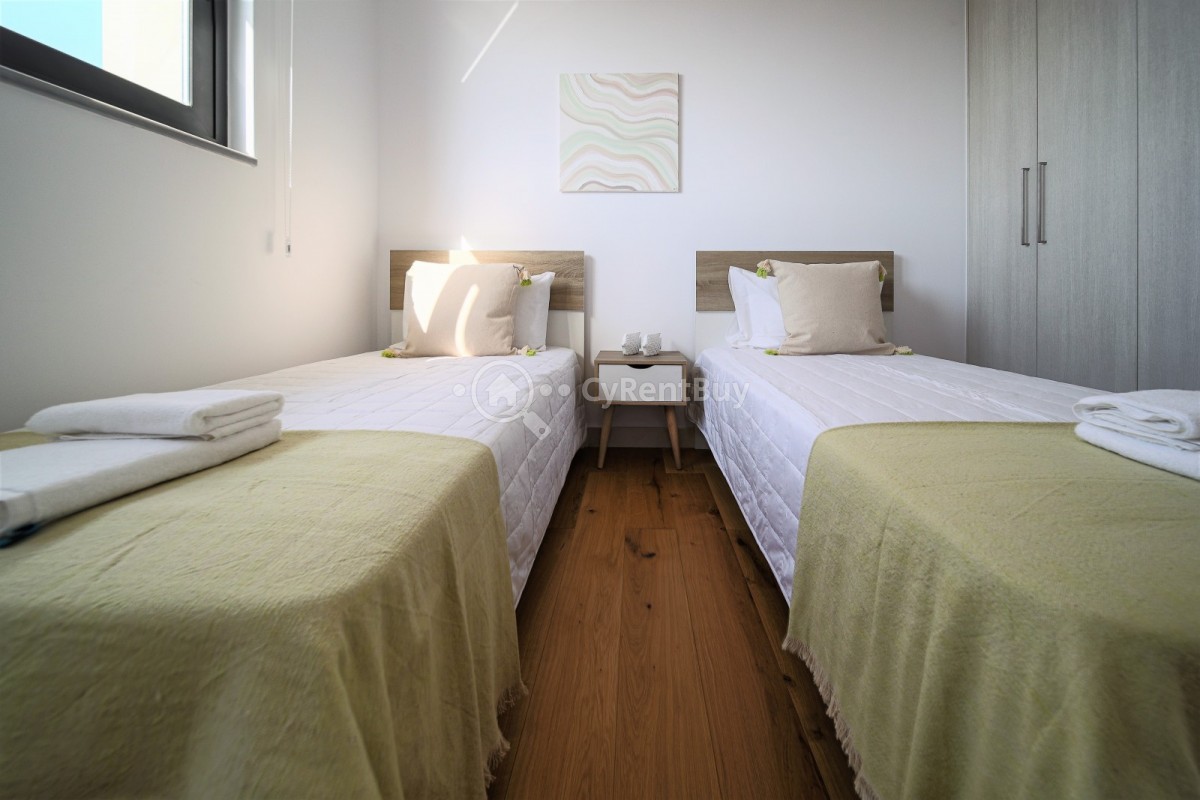 Sypialnia główna wyposażona jest w podwójne łóżko, przestronną szafę i prywatną łazienkę, podczas gdy w pozostałych sypialniach znajdują się odpowiednio dwa pojedyncze łóżka i jedno podwójne łóżko.