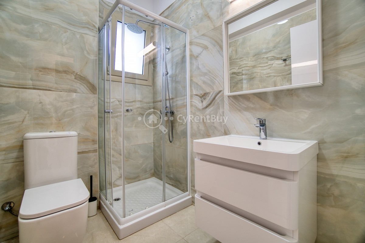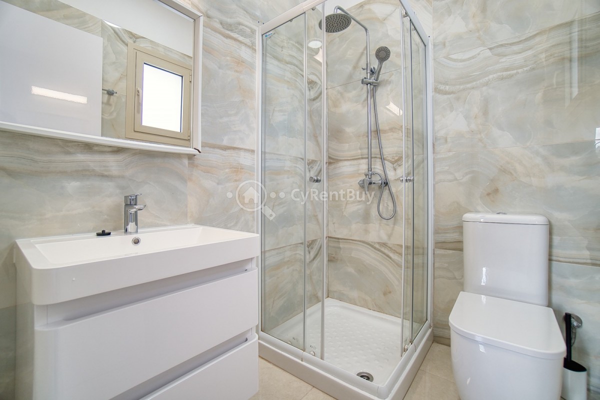 Apartament oferuje stylowe sypialnie oraz łazienki z prysznicami typu walk-in.