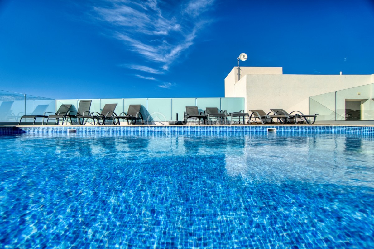 The highlight of this property is the roof garden with a swimming pool and breathtaking sparkling sea views, creating an ideal space to unwind and enjoy the Mediterranean lifestyle.