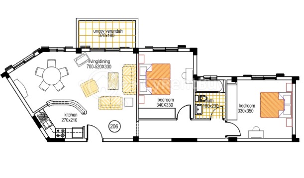 Wewnątrz znajdują się dwie unikalne sypialnie i jedna łazienka, łącząc komfort i styl.