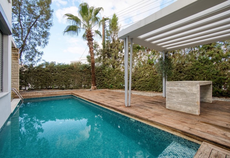 Na zewnątrz znajduje się prywatny basen, leżaki oraz strefa grillowa z barem, tworzące idealne warunki do wypoczynku. Willa posiada również zadaszone miejsce parkingowe, klimatyzację we wszystkich pomieszczeniach i energooszczędną konstrukcję (klasa A).
