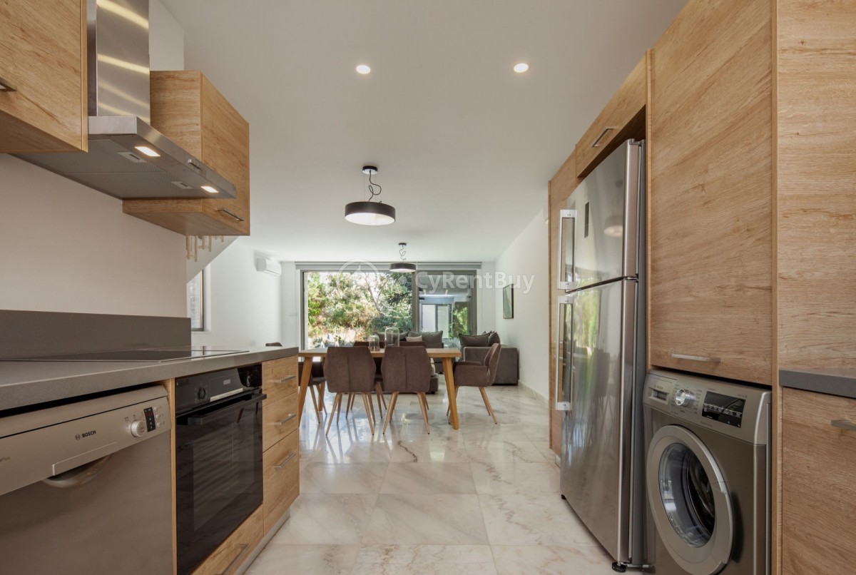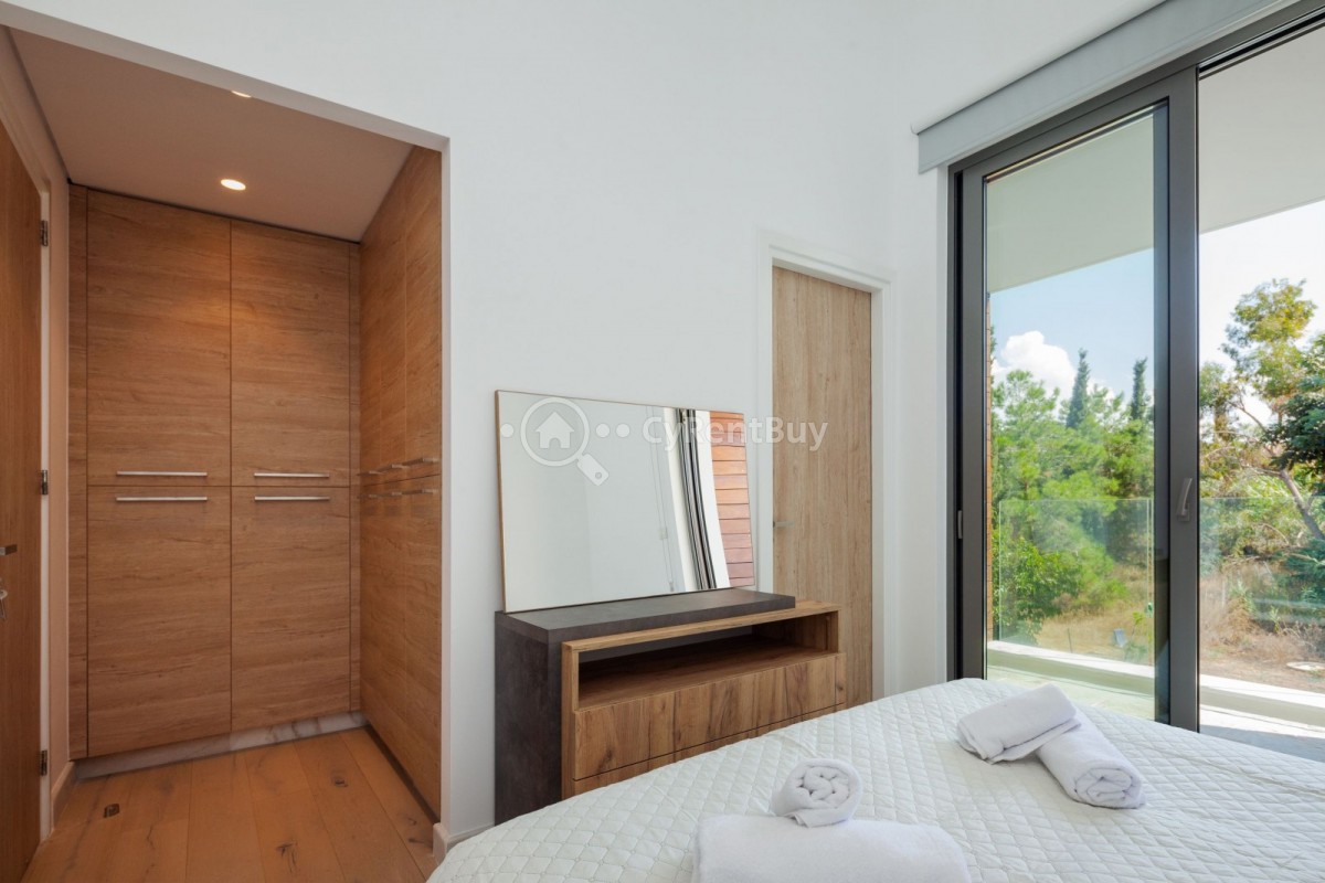 Willa charakteryzuje się nowoczesną architekturą, zapewniając przestronne i komfortowe wnętrza otoczone bujną zielenią.