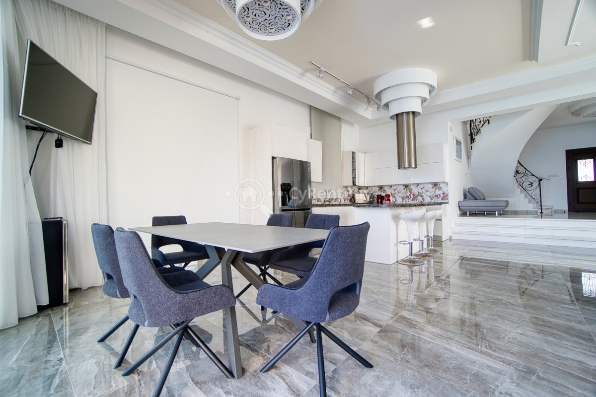 Jadalnia jest idealnym miejscem do organizowania spotkań towarzyskich, z miejscami dla sześciu osób. Ta willa łączy w sobie elegancję, spokój i luksus w każdym zakątku.
