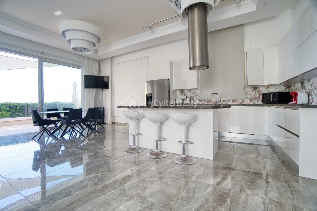 Ta oszałamiająca luksusowa willa przy plaży oferuje niezrównane doświadczenie życia z zapierającymi dech w piersiach widokami na morze i bujną roślinnością otaczającą nieruchomość.