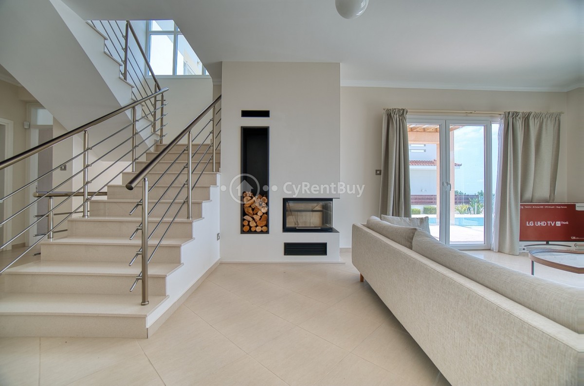 Przestronny układ obejmuje przestronny salon z kominkiem sięgającym od podłogi do sufitu oraz moskitiery wokół domu.