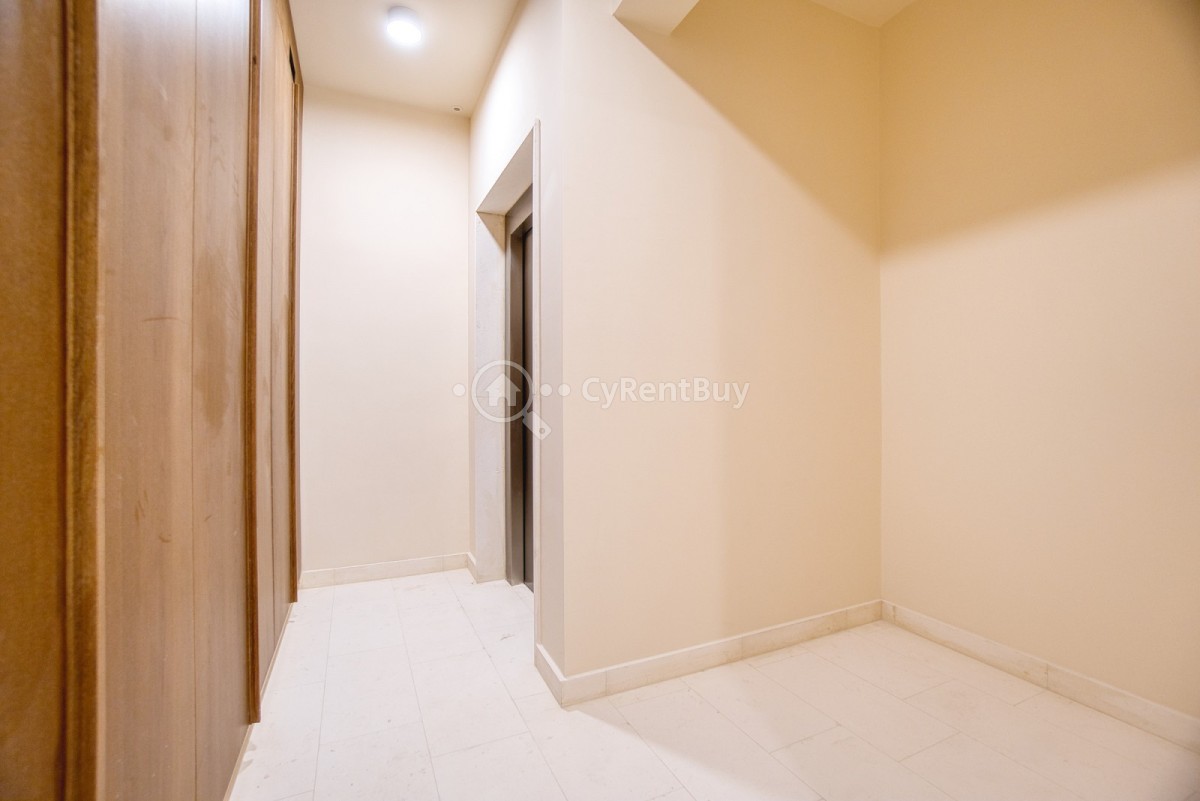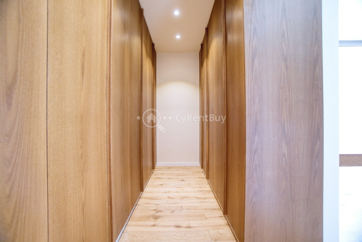 Każde pomieszczenie wyposażone jest w drzwi w wykończeniu orzechowym oraz wbudowane szafy.