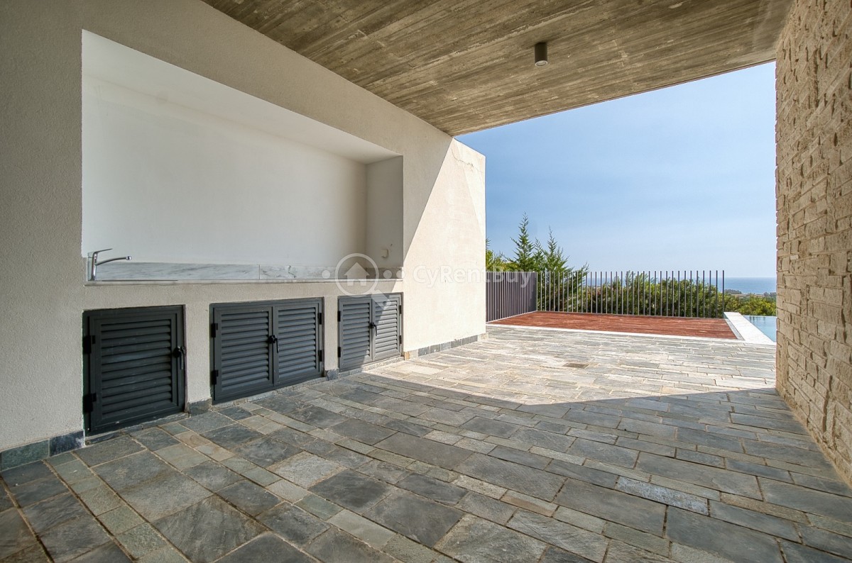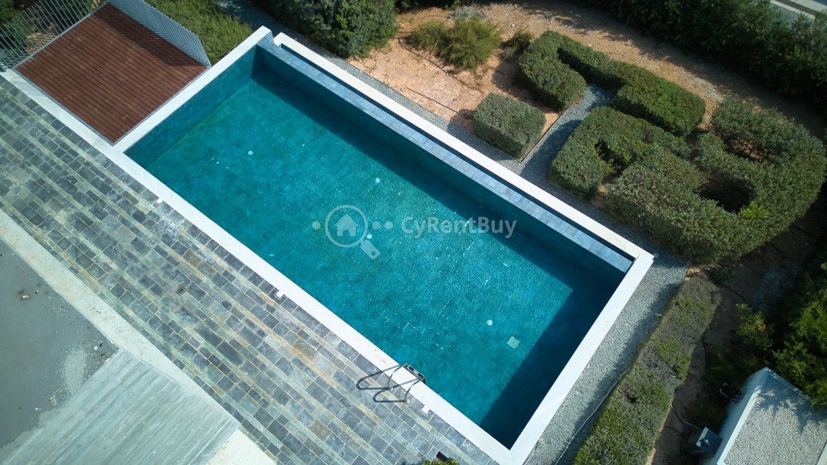 Na zewnątrz znajduje się prywatny basen, wbudowane miejsce do grillowania oraz przestronne tarasy z widokiem na wybrzeże — idealne do wypoczynku lub spotkań z bliskimi przy zachodzie słońca.