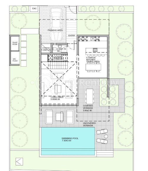 Dom oferuje przestronną kuchnię oraz oddzielny salon, zapewniając mnóstwo miejsca zarówno do przyjmowania gości, jak i relaksu. Dodatkowo, dedykowana pralnia zwiększa wygodę codziennych obowiązków.
