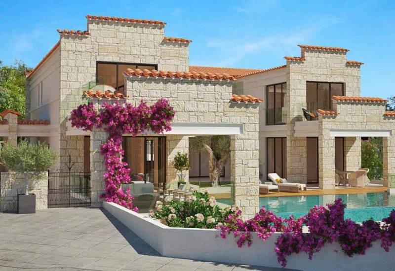 Projekt willi to dowód na doskonałe połączenie nowoczesnej i śródziemnomorskiej architektury, łączącej tradycyjne materiały, takie jak kamień, gliniane dachówki i drewno, z czystymi liniami i dużymi otwartymi przestrzeniami.