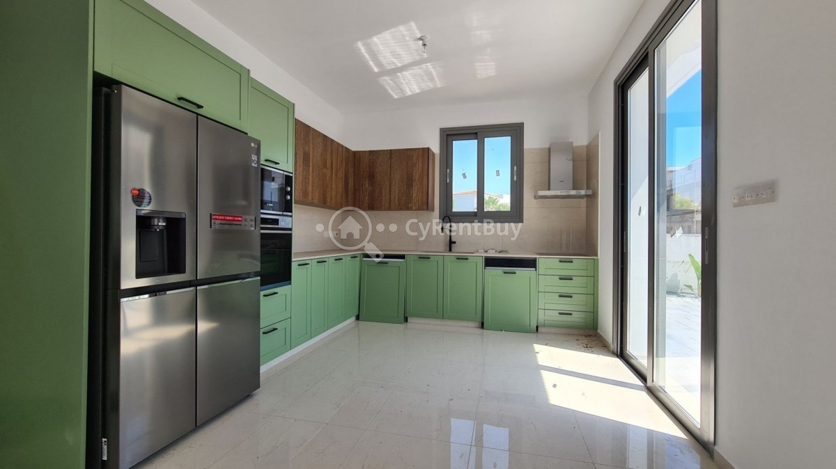 Wewnątrz znajduje się unikalna kuchnia w eleganckim, zielonym designie, co sprawia, że ta willa jest idealnym połączeniem luksusu i stylu.