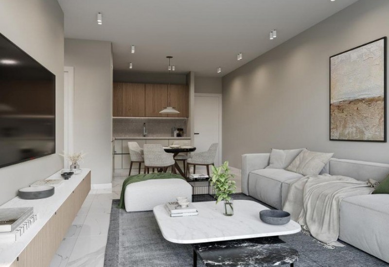 The development is enriched with premium lifestyle amenities, including a large communal swimming pool surrounded by lush landscaped gardens—perfect for relaxation under the Cyprus sun. A fully equipped gym overlooking the pool provides a motivating space for maintaining an active lifestyle.