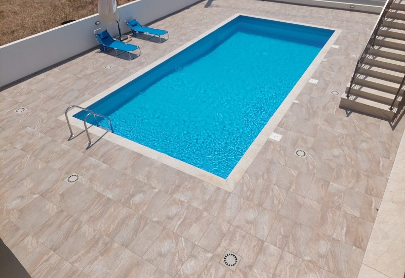 Basen wspólny: Zachęcający basen wspólny służy jako centrum relaksu. Wyobraź sobie, jak Twoi goście spędzają leniwe popołudnia, odpoczywając nad wodą, korzystając z śródziemnomorskiego słońca i tworząc cenne wspomnienia.