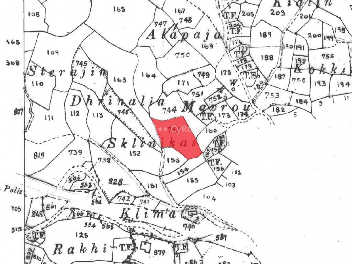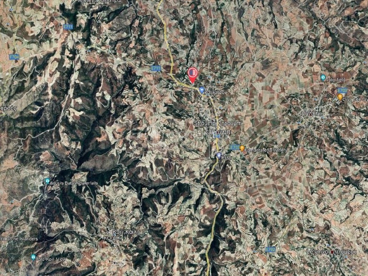 Residential field in Stroumpi Community in Paphos District. The property is located about 1.3 kilometers northwest from the center of the community and about 100 meters north of the main road connecting the villages of Stroumpi and Giolou.