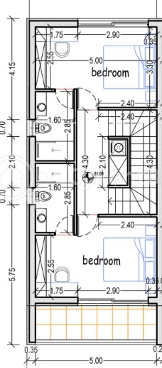 Na piętrze znajdują się dwie sypialnie, każda z własną łazienką, co zapewnia prywatność i wygodę.